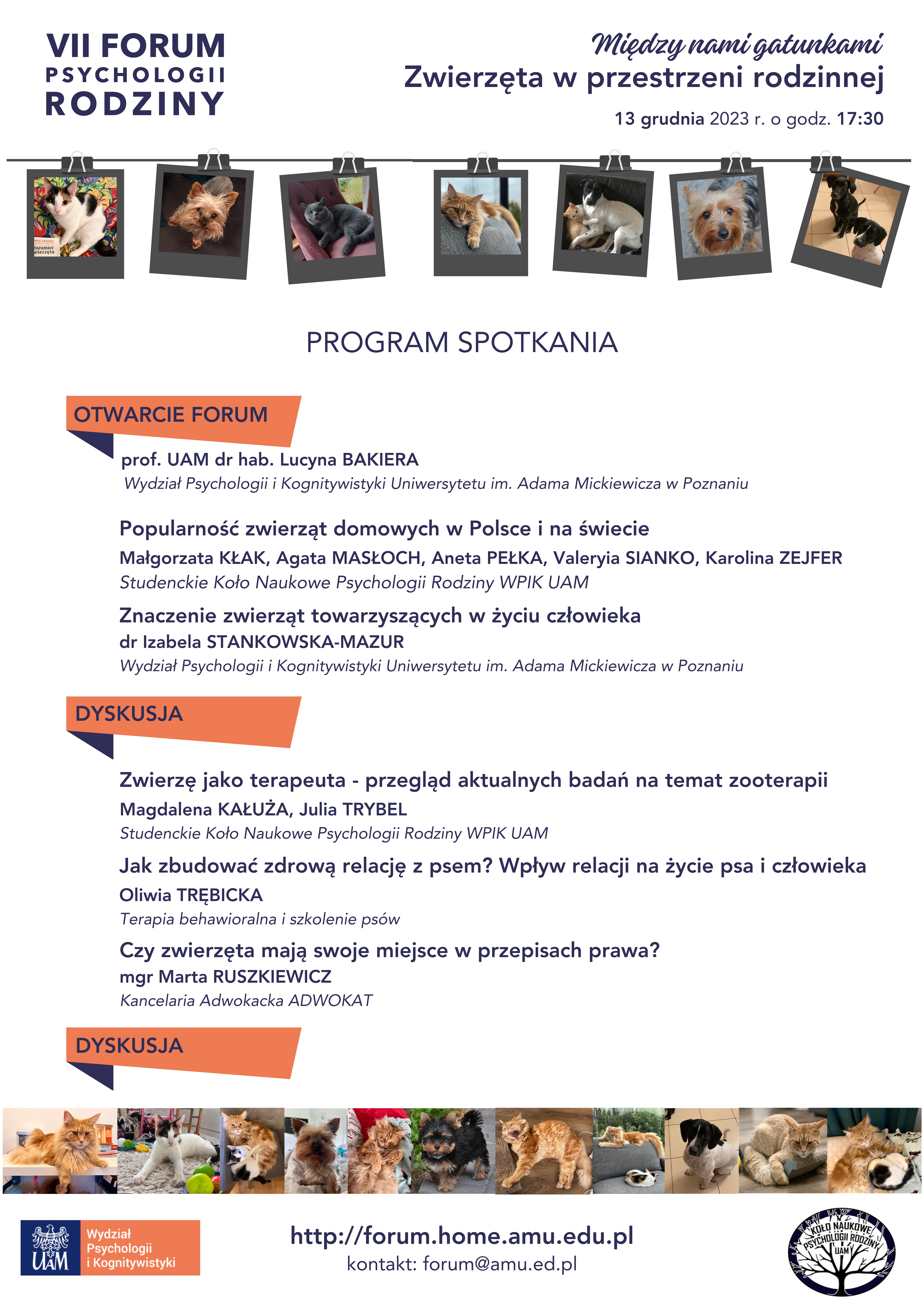 VII Forum Psychologii Rodziny zrealizowaliśmy się pod hasłem Między nami gatunkami – zwierzęta w przestrzeni rodzinnej. Stało się już tradycją, że spotkanie miało charakter zdalny, a uczestnicy łączyli się online za pośrednictwem platformy MS Teams.